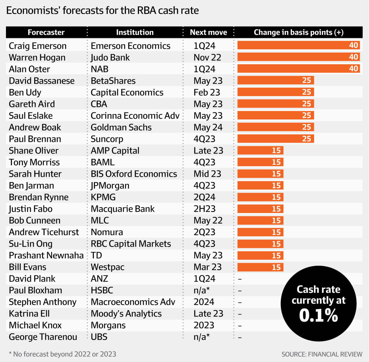 CBA, for example, is currently predicting the RBA will increase the official cash rate in May 2023, while Westpac is predicting a rate hike in March 2023 – both well before the RBA’s 2024 timeline.